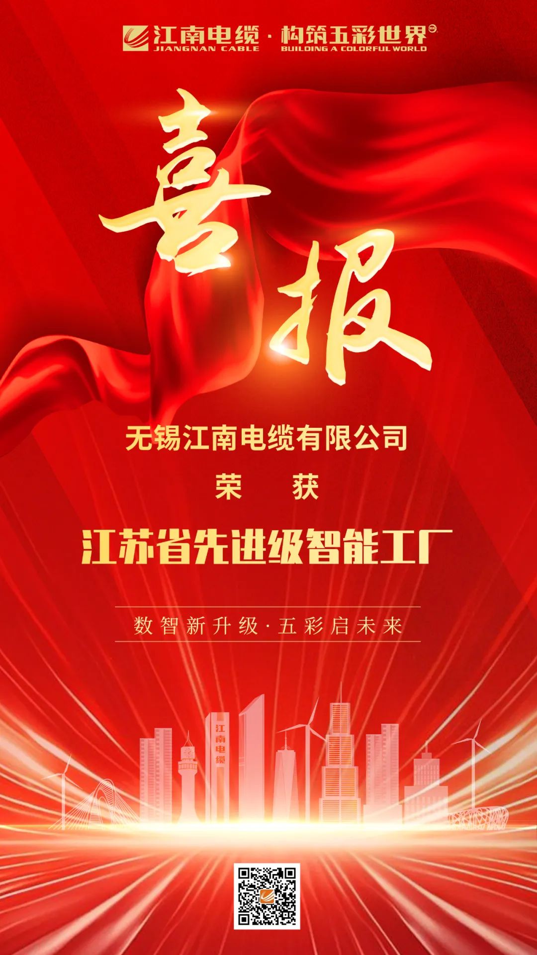 【喜報(bào)】江南電纜榮獲江蘇省先進(jìn)級(jí)智能工廠