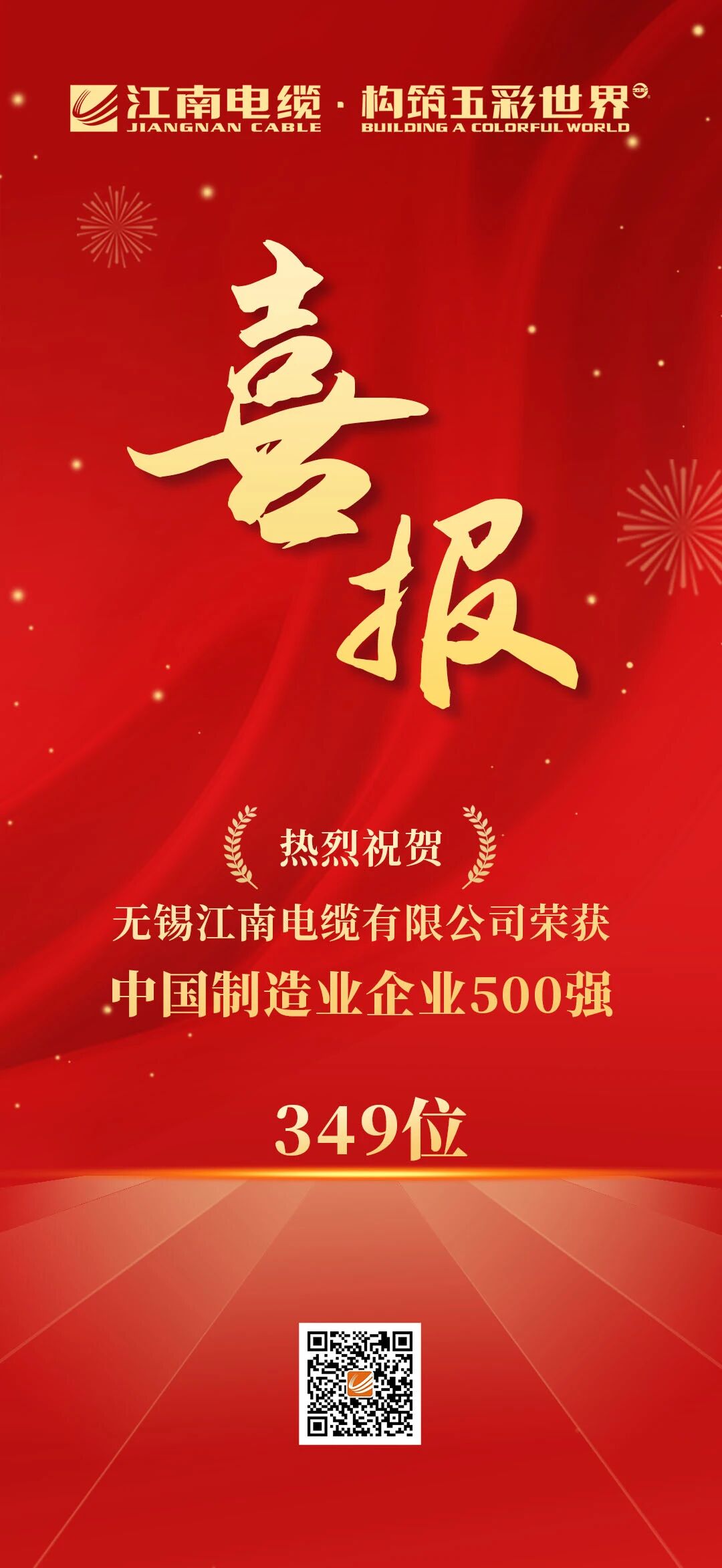 【喜報】江南電纜榮獲2025中國制造業企業500強!