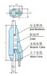 預制分支電纜的聯接體部分是采用專用PVC或合成材料制成的如右圖所示的分支電纜聯接體