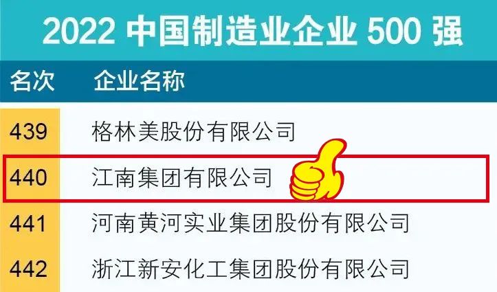 Blockbuster! Jiangnan Group retained its position as one of the top 500 Manufacturing enterprises in China